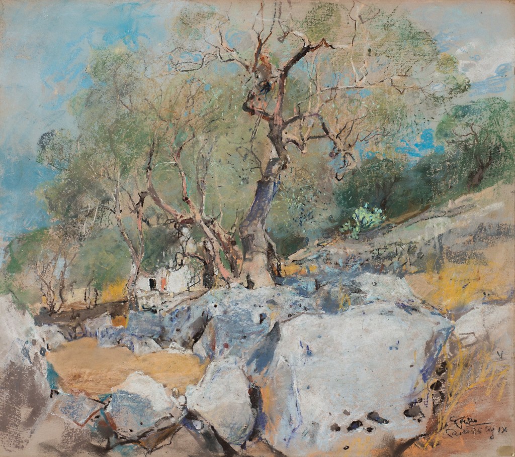 With this in mind, Lista would certainly have extolled the value of the direct channelling of a truthful, and fleeting, moment in painting. In Casciaro’s work, like that of Lista, we can see the spirit of innovation anchored in tradition. The notion of not dissipating inspiration with intermediary stages would have appealed to Casciaro, who became a superlative en plein air pastel artist who, according to contemporary accounts, worked with pastels with fearsome speed and instinct. Casciaro was industrious, ‘un accanito operaio della pittura’; he was always outdoors and he worked on Sundays (occasionally being subjected to colourful insults for such sacrilege by the passing faithful on their way to church).