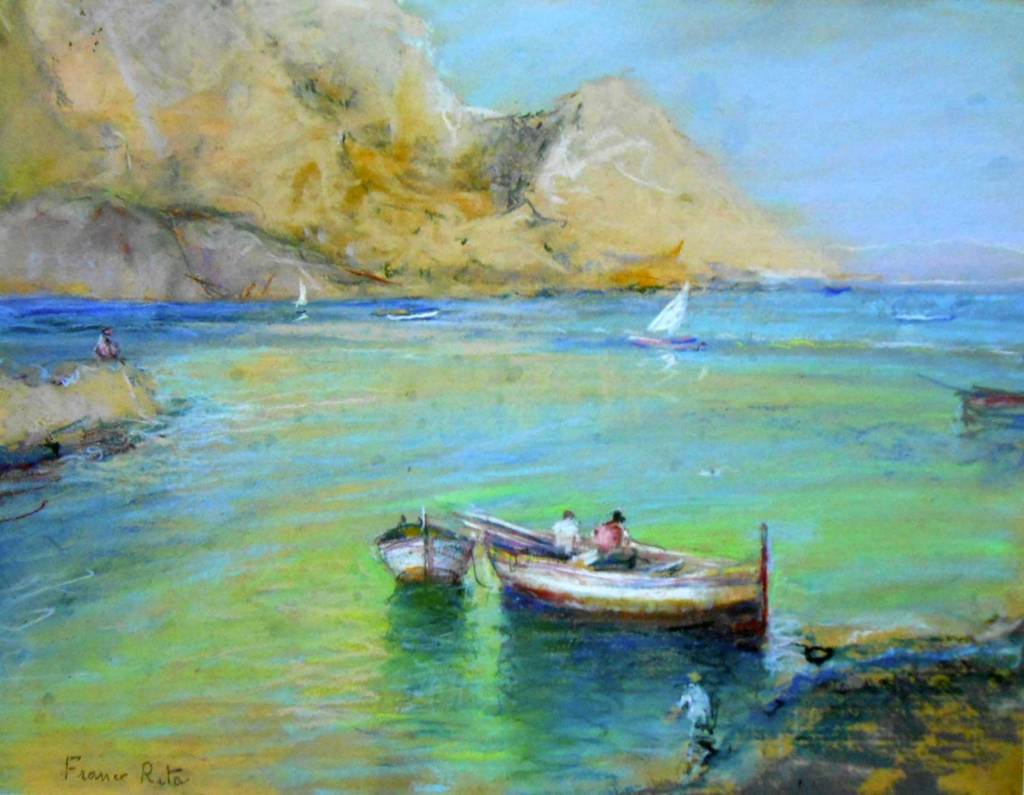 Further to this, a consideration of even three core pastel techniques, helps us to see how a pastel artist like Casciaro could employ layered colours, to different effect. The blending, or rubbing together of two pastel colours could produce subtle nuances of colour. The application of a pastel layer in a loose, uneven or scribbled manner – scumbling, could be used to create a rough, opaque, textured effect, which would allow underlayers to show through. In a similar manner, the overlay of a thin transparent layer of pastel, a glaze, could allow light to pass through layers, in a more smooth and unified way, creating a sense of luminosity and depth. The repertoire of the medium therefore invites its own possibility for the mastery of colour and texture. We should also note that Casciaro was adept at using a quite thin and ‘nervous’ line to depict, for example, the movement of waves.