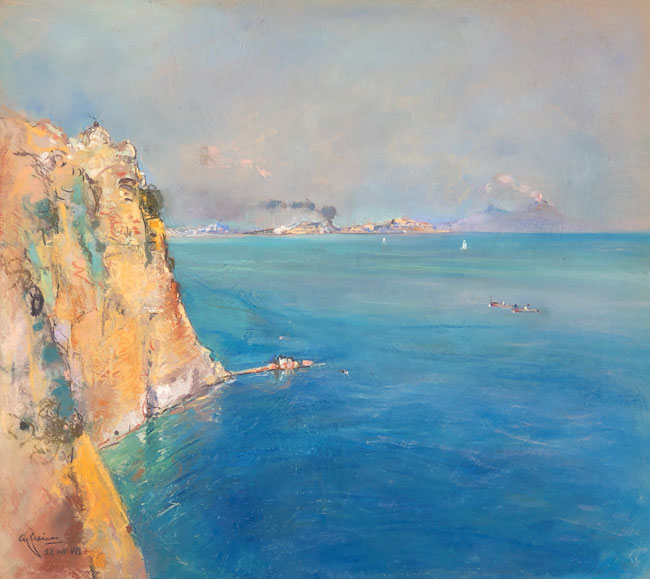 So, Casciaro was committed, to a large extent, to what lay between the iconic images. Even when he does depict the Faraglioni of Capri, or Vesuvius, the scene is far from being a grand historical sweep, a picture postcard, or a schematic topographical study.