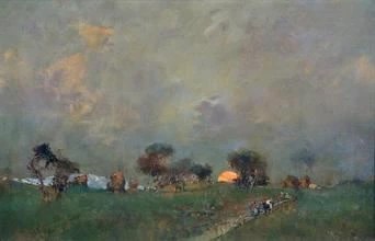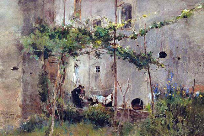 Giuseppe Casciaro, La Lavandaie (1895). This socially realistic scene which nonetheless retains a poetic lightness.
