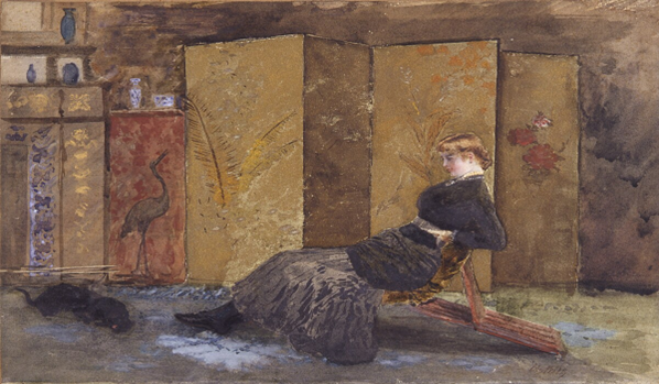 Il paravento giapponese/ The Japanese folding screen (ca.1878), watercolor on paper, 22.5 × 31.5 cm, Pinacoteca Metropolitana di Bari.