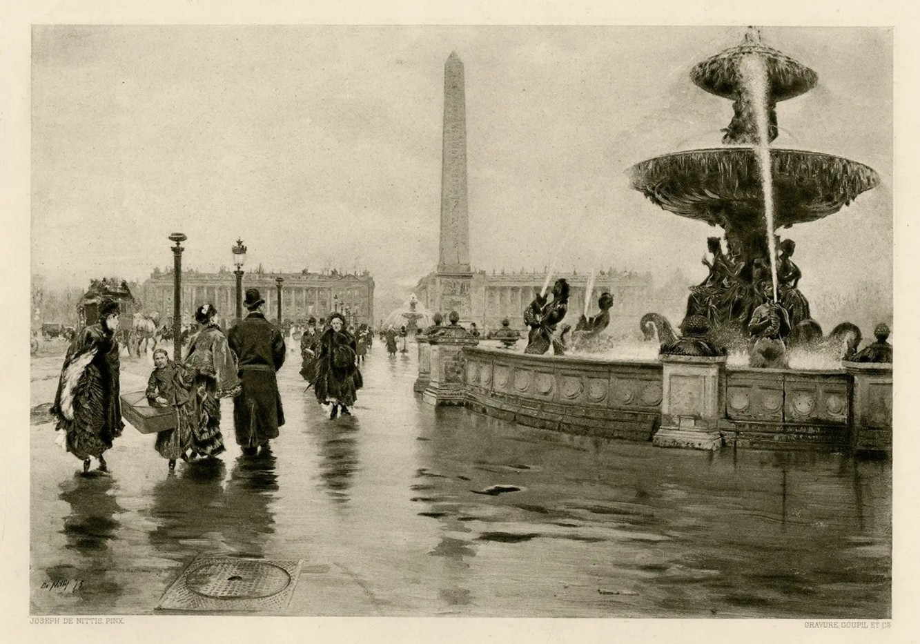 La Place de la Concorde (1875), a photogravure; the original is part of the collection at the Presidential Atatürk Museum Mansion in Ankara, Turkey.