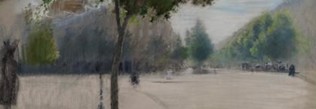 The first of these two works, for which I can only find a photogravure reproduction, depicts a rainy day in dark tones, with a reflective pavement. In contrast, A Corner of the Place de la Concorde presents the setting in a brighter, clearer and more sharply defined moment. The 1875 work was widely disseminated in reproductions, such as the illustration used here, and may well have been a source of inspiration for a number of subsequent painters of boulevard scenes, including Jean Béraud (1849–1935).